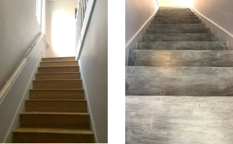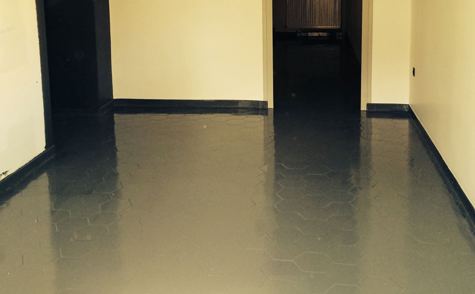 Techniques : Parquet flottant stratifié / Moquettes (dalles ou en rouleau) / Peinture EPOXY / Revêtement en PVC